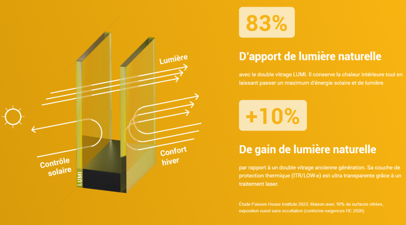 Le double vitrage Eclaz se distingue par sa capacité à maximiser l’apport de lumière naturelle à l'intérieur des habitations de 10% par rapport aux double vitrages standards.